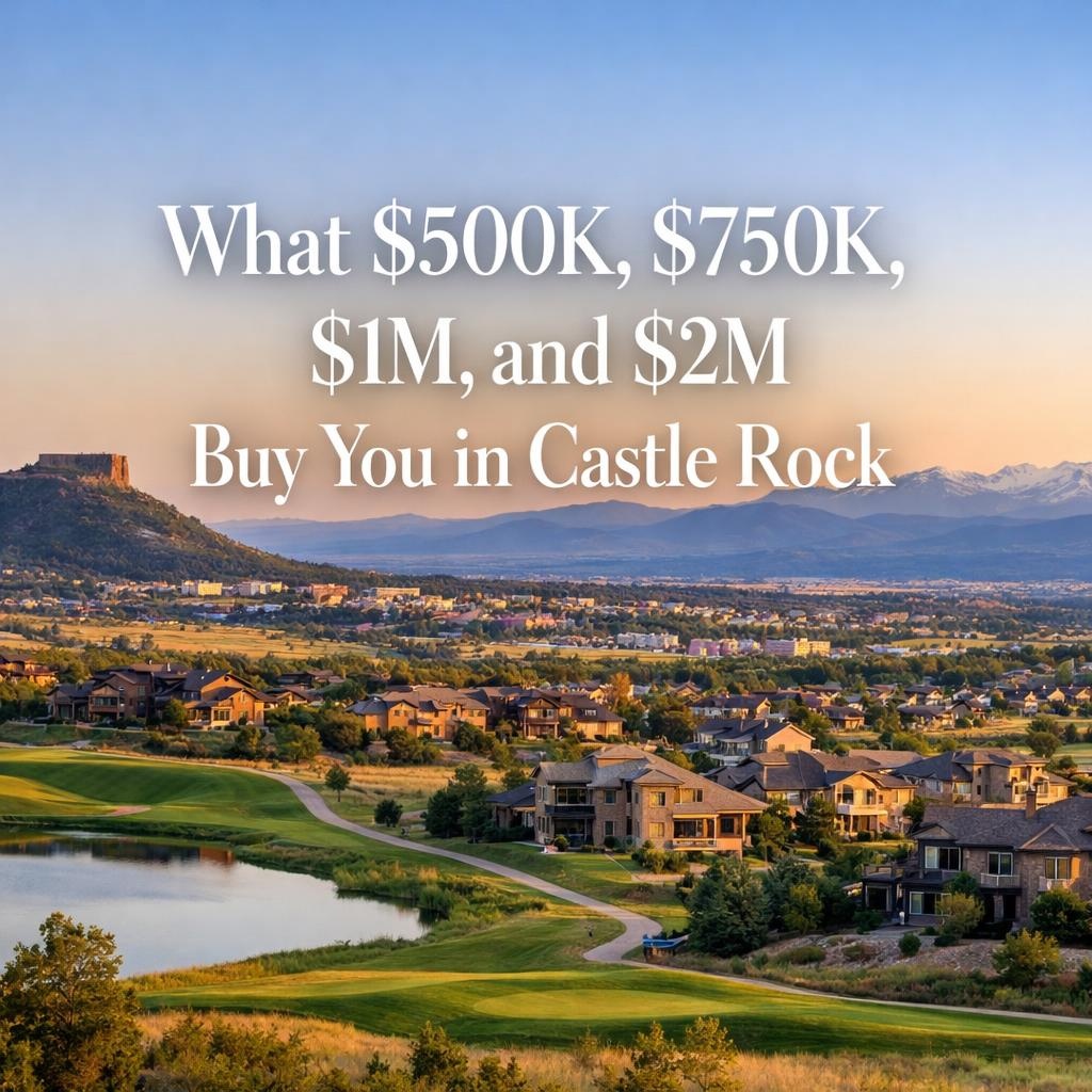 Castle Rock’s price tiers reflect Douglas County’s school premiums, I-25 commute advantages to DTC and Colorado Springs, and resilient housing against expansive clay soils and frequent hail at 6,200 feet elevation. In late 2025’s balanced market with medians around $665,000 and 43-50 days on market, $500K accesses starter townhomes near Douglas Lane Elementary; $750K unlocks family ranches in The Meadows; $1M targets luxury colonials in Castle Pines Village; and $2M delivers custom estates on acreage overlooking Castle Rock butte. These segments guide equity decisions amid 99% sales-to-list ratios and ownership costs including 0.6% taxes plus HOA-funded trails buffering microbursts.